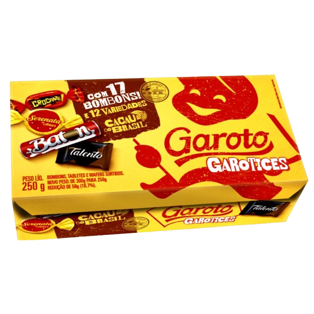 escolha perfeita para quem busca variedade, sabor e qualidade em um só produto. Com uma seleção especial dos clássicos da marca Garoto, como Serenata de Amor, Baton, Crocante, Opereta, e muitos outros, essa caixa oferece uma explosão de sabores que agradam a toda a família.
