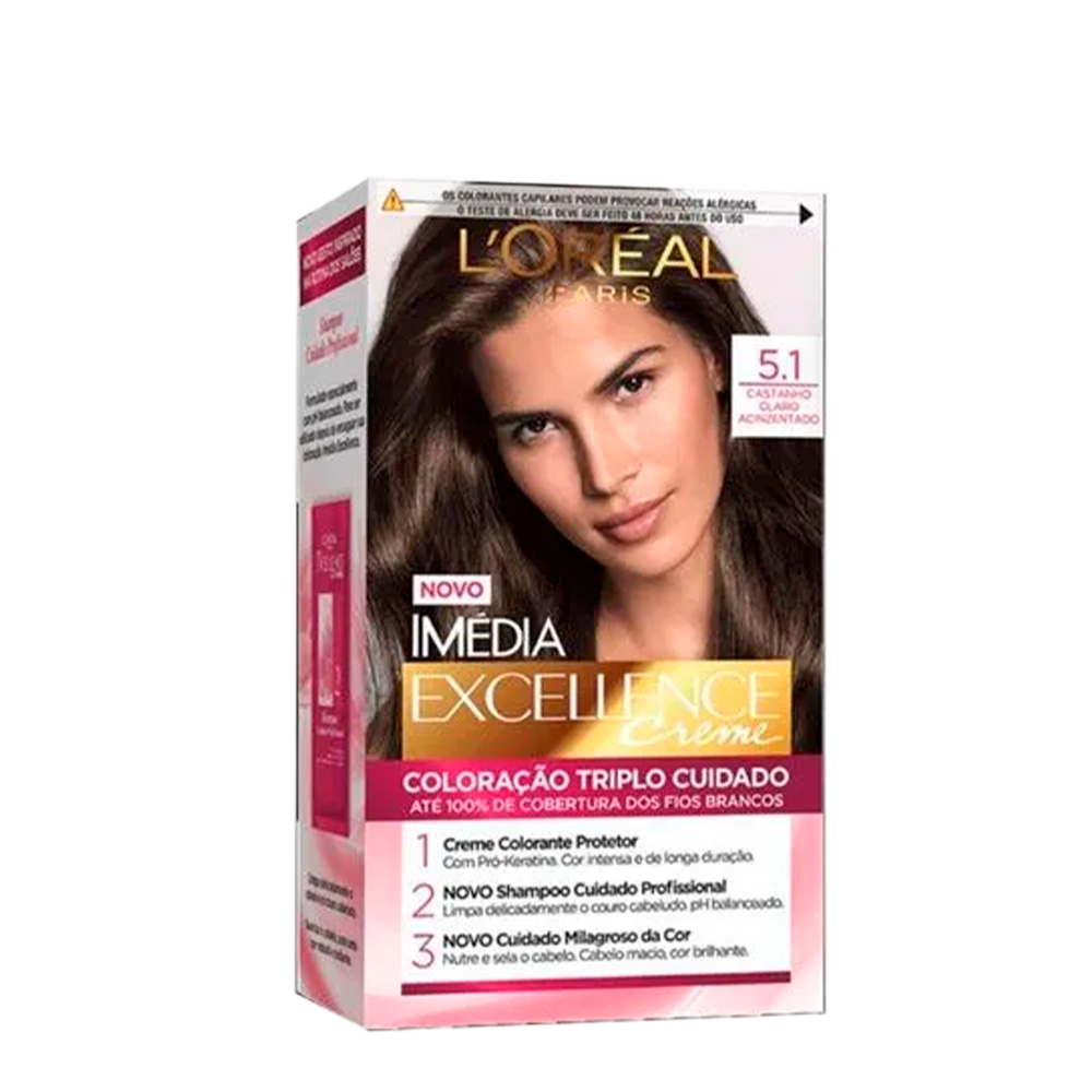 Descubra a Coloração Imédia 5.1 Castanho Claro Acinzentado, ideal para quem busca um tom sofisticado e natural. Com fórmula de alta cobertura, garante uniformidade desde a raiz até as pontas, disfarçando fios brancos e realçando a beleza dos cabelos. Sua tecnologia exclusiva proporciona cor intensa, brilho duradouro e maciez incomparável, mantendo a saúde dos fios durante a coloração.