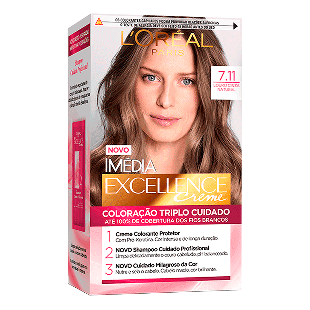 A Coloração Imédia 7.11 Louro Cinza Natural oferece um resultado profissional diretamente em casa. Com sua fórmula enriquecida, proporciona cobertura completa dos fios brancos, enquanto garante uma cor uniforme, luminosa e de longa duração. Ideal para quem busca um louro sofisticado com reflexo cinza natural, sem amarelar os cabelos.