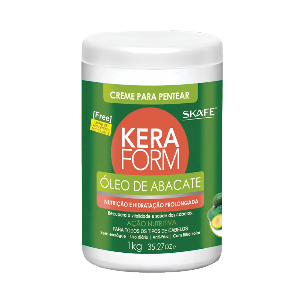 O Creme para Pentear Keraform Óleo de Abacate 1 kg, da Skafe, é uma opção popular e econômica no Brasil, focada em nutrição e hidratação dos cabelos ¿ especialmente os ressecados ou opacos.