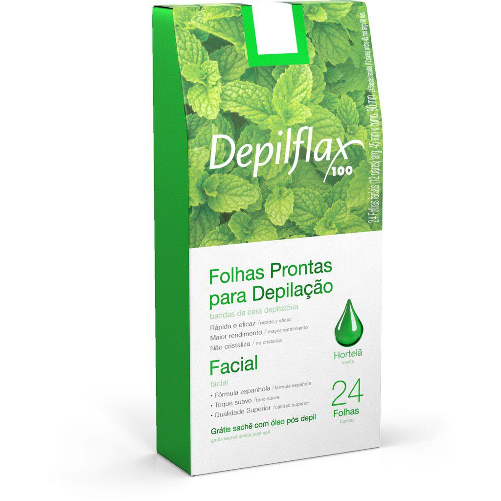 Folhas Prontas para Depilação Facial Depilflax Hortelã C/24 Unidades