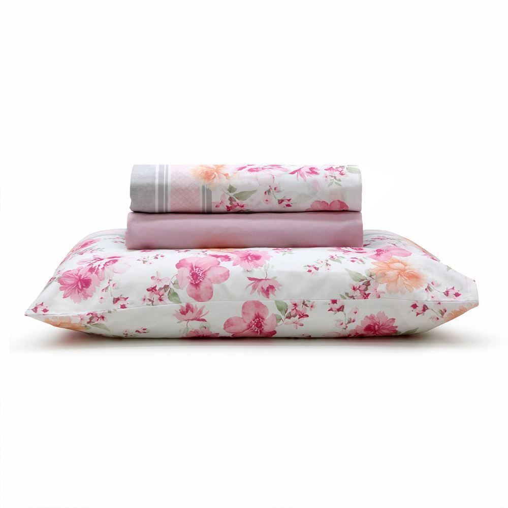Jogo Lençol Santista King ROYAPJDKM1 Estampado Rosa