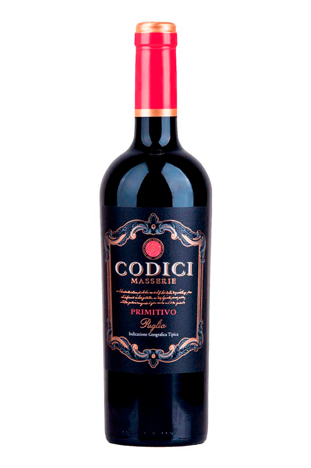 Com coloração rubi profunda e brilhante, o Codici Primitivo apresenta notas marcantes de frutas vermelhas maduras, como ameixa e cereja, além de toques sutis de especiarias, baunilha e chocolate, provenientes de sua passagem por barricas de carvalho.